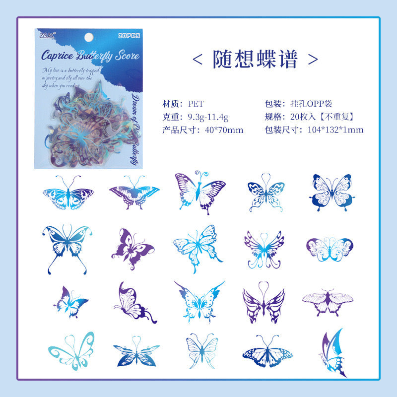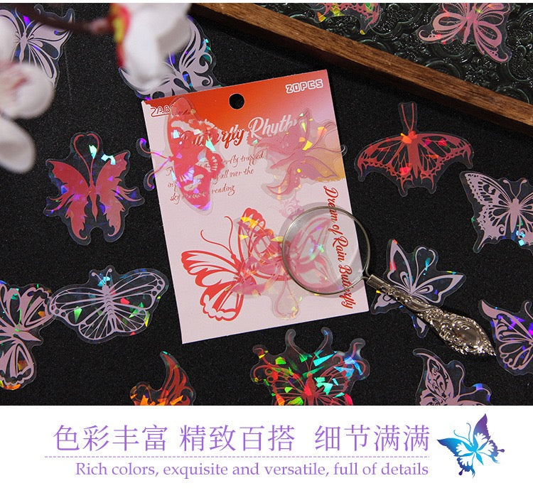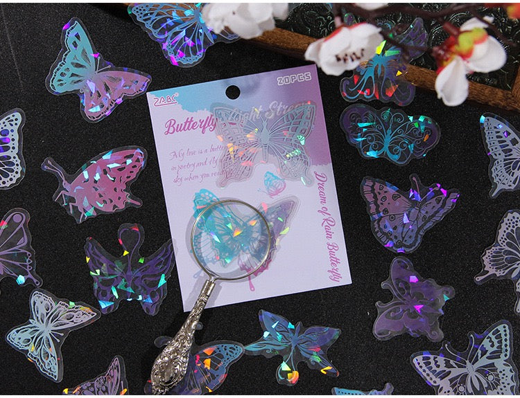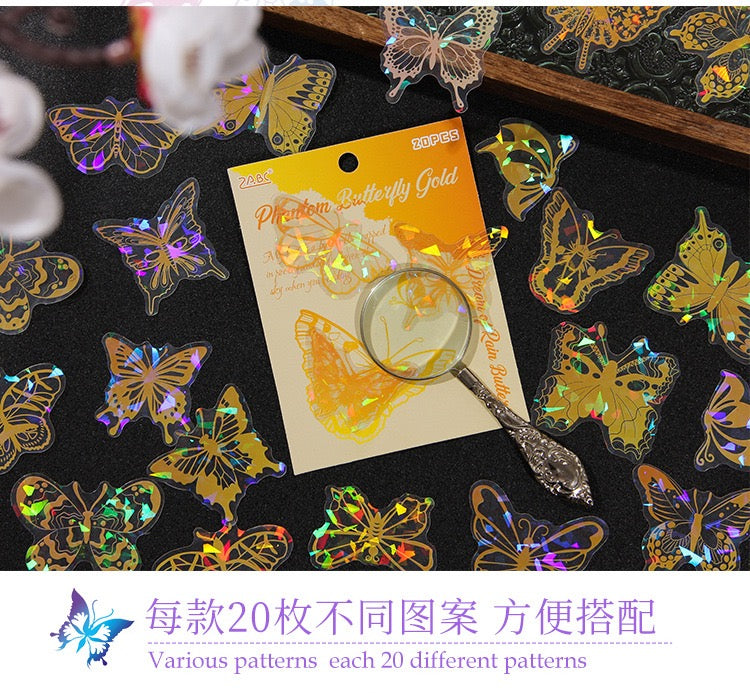 20pcs/lot Dream Crystal Butterfly Stickers Retro Scrapbooking Material Label Diy Diary Album Journal Decor Sticker